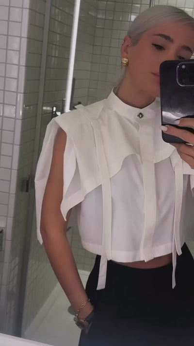 Omuzları pelerin ve apolet detaylı crop gömlek.