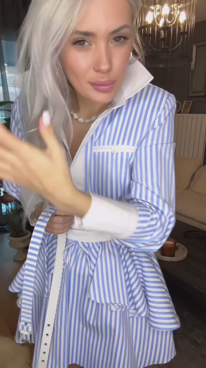 Detay: Fileto cep detaylı kemer dahil gömlek elbise. eteği iki kat volanlı sırt dekolteli arka beden beli lastikli mini elbise