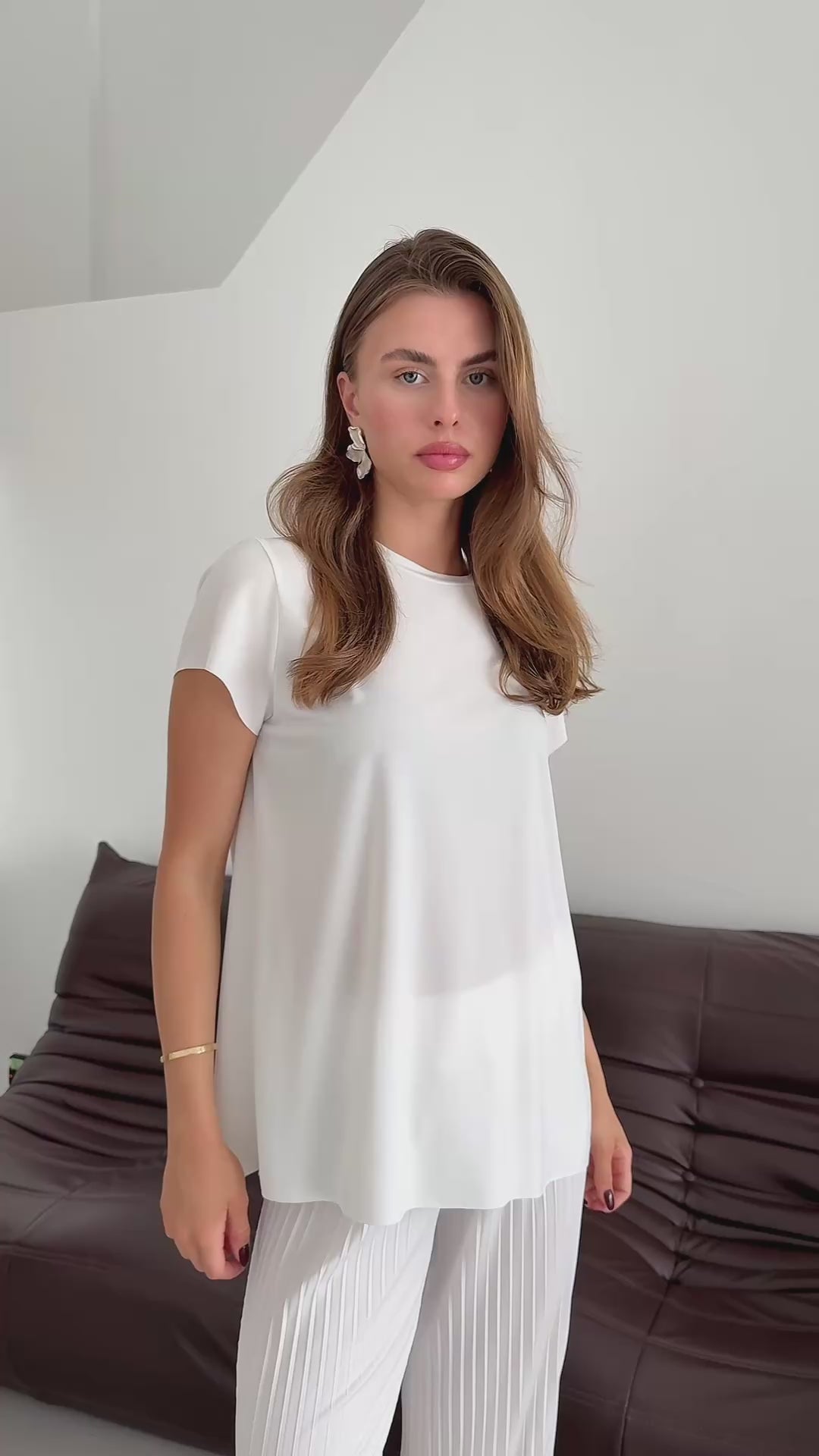Detay: Pantolon pliseli, beli lastikli, rahat kesim ve sandy kumaştır.